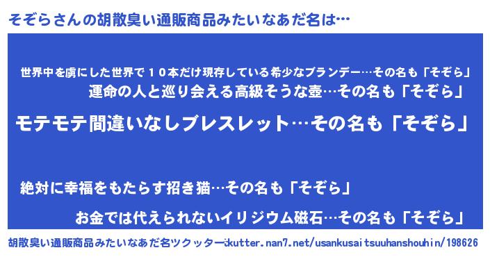 | ヒーロー風カッコイイあだ名 | 『スーパーソゾラ』『仮面ソゾダー』 |
