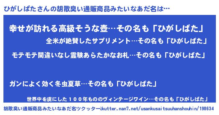 | 男性向けラノベタイトル風あだ名 | 『ひがしばたの憂鬱』 |