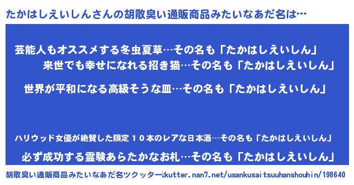 | 意味不明あだ名 | 『たかはしえいしんフォーエバー』 |