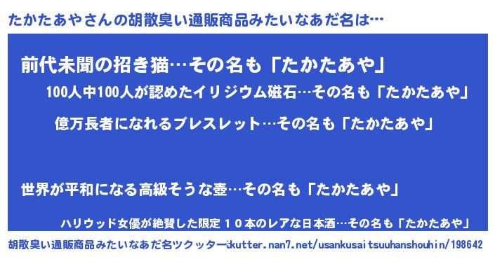 | ヘコむあだ名 | 『たかにー』『たかたあや(笑)』 |