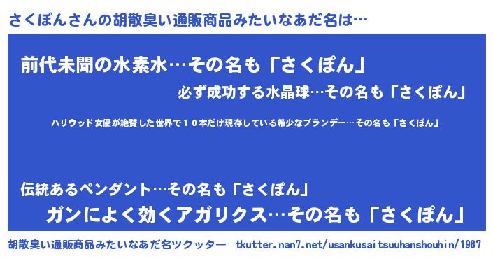 | 意味不明あだ名 | 『住所不定無職さくぽん(79歳)』 |