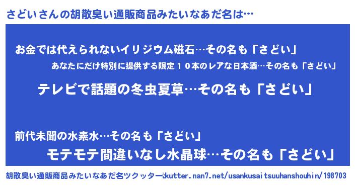 さどいさんの胡散臭い通販商品みたいなあだ名をツクッター!
