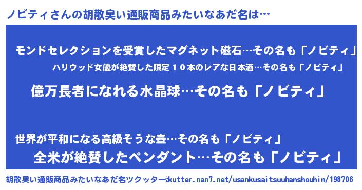 | 男性向けラノベタイトル風あだ名 | 『ノビティアートオンライン』 |