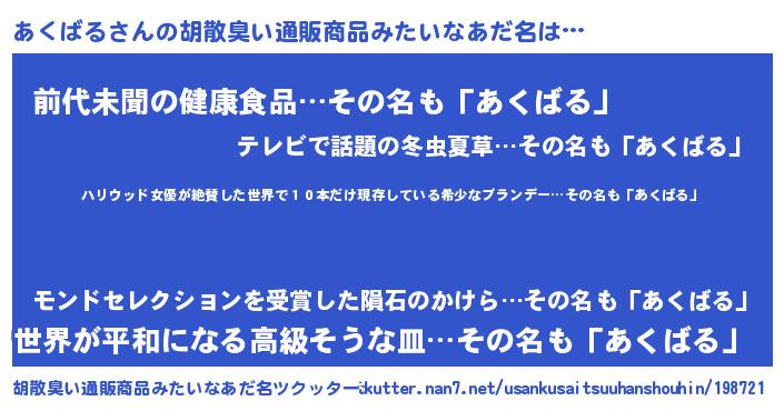 | ヘコむあだ名 | 『あくばる(震え声)』『つくし』 |