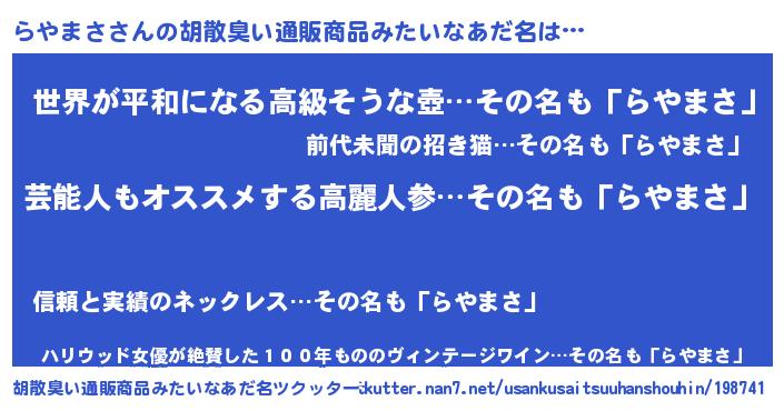 | ヘコむあだ名 | 『酢こんぶ』『らやまさ(爆)』 |