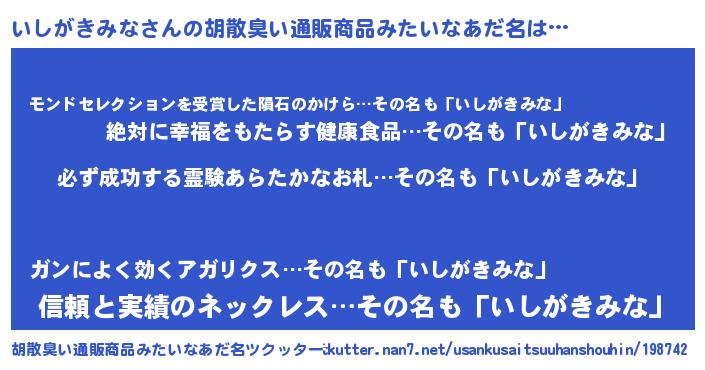 | 男性向けラノベタイトル風あだ名 | 『いしがきみなの憂鬱』 |