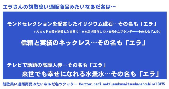 | 意味不明あだ名 | 『とにかく怪しいエラ』『永久保存エラ』 |