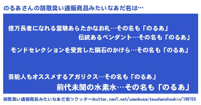 | 男性向けラノベタイトル風あだ名 | 『ノーゲーム・ノーノルア』 |