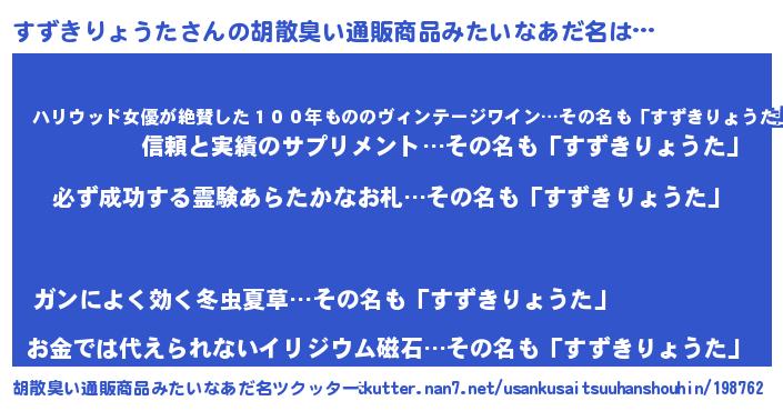 | 男性向けラノベタイトル風あだ名 | 『すずきりょうたの憂鬱』 |