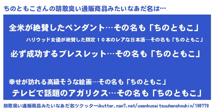 | 意味不明あだ名 | 『ペロリンちのともこ』『自称ちのともこ』 |