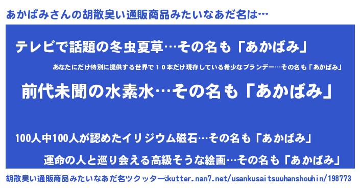 | 恥ずかしいあだ名 | 『あかちん』『アカバミデラックス』 |