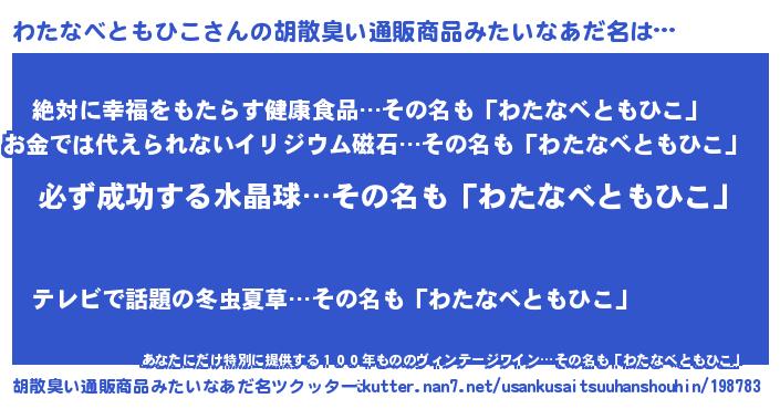 | 意味不明あだ名 | 『めかぶ科わたなべともひこ属』 |