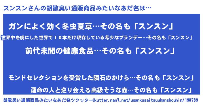 | 意味不明あだ名 | 『ヨモギ科スンスン属』『自称スンスン』 |