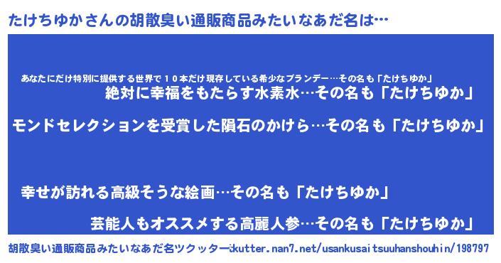 | ヘコむあだ名 | 『たけちゆか(苦笑)』『酢こんぶ』 |
