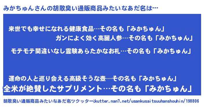 | 意味不明あだ名 | 『ペロリンみかちゅん』『自称みかちゅん』 |
