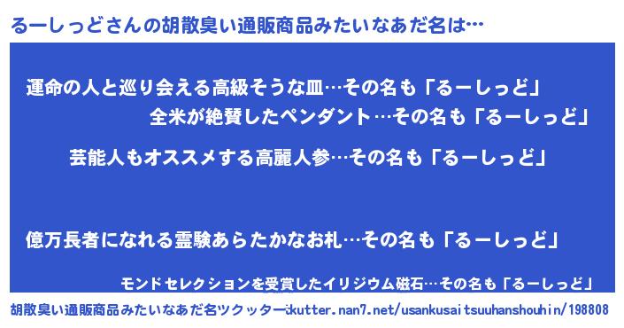 | 意味不明あだ名 | 『自称るーしっど』『ペロリンるーしっど』 |