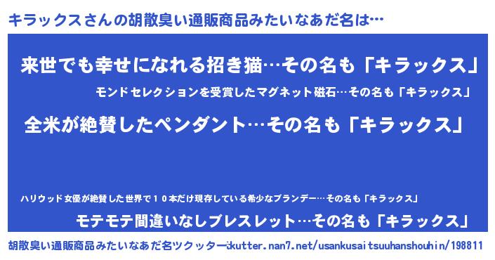 | 意味不明あだ名 | 『とにかく怪しいキラックス』 |