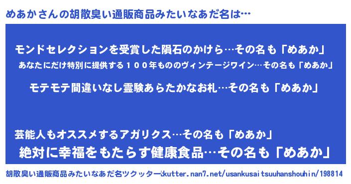 | 意味不明あだ名 | 『ペロリンめあか』『永久保存めあか』 |