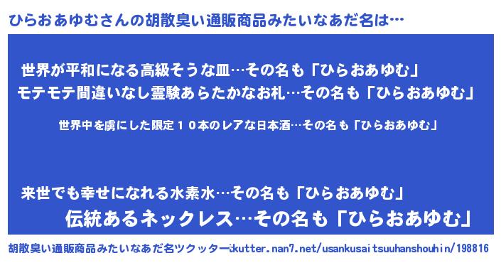 | 意味不明あだ名 | 『住所不定無職ひらおあゆむ(53歳)』 |