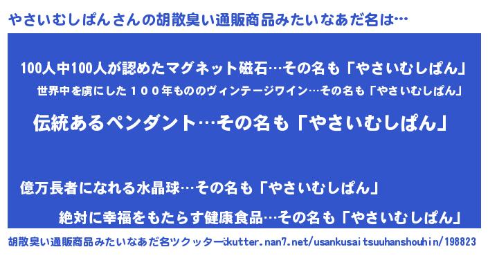 | ヘコむあだ名 | 『やさぷりん』『やさいむしぱん(笑)』 |