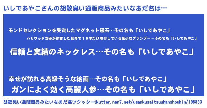 | 意味不明あだ名 | 『とにかく怪しいいしであやこ』 |