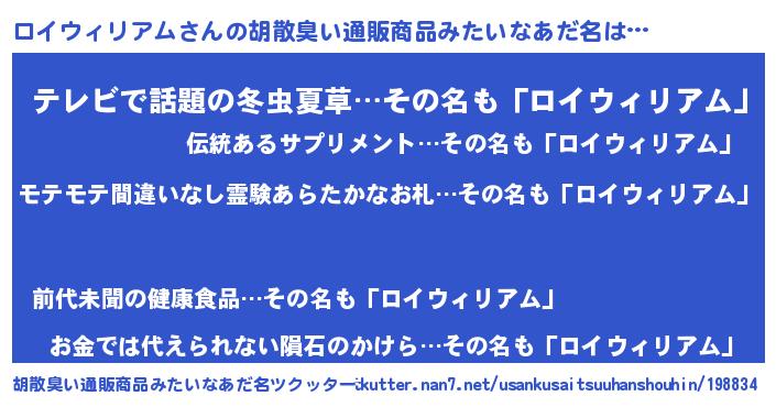 | 男性向けラノベタイトル風あだ名 | 『ロイウィリアムアートオンライン』 |