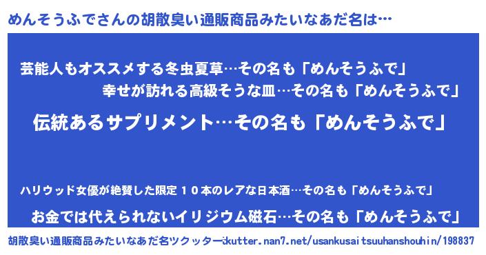 | ポケモン風あだ名 | 『メンキング』『ヒメンソウフデ』 |