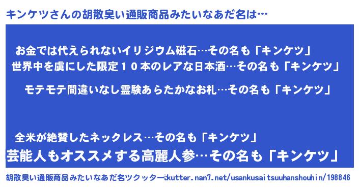 | ヒーロー風カッコイイあだ名 | 『スーパーキンケツ』『愛の使者キンケツ』 |