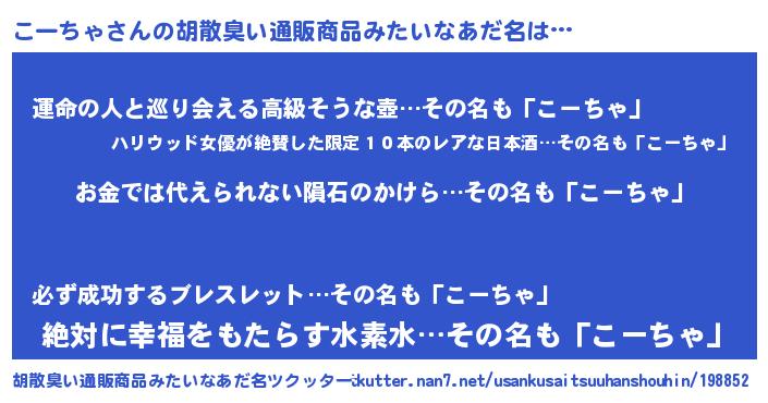 | 女子向けラノベタイトル風あだ名 | 『こーちゃ恋絵巻』『こーちゃの契約王妃』 |