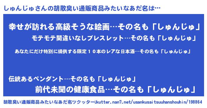 | 意味不明あだ名 | 『住所不定無職しゅんじゅ(39歳)』 |