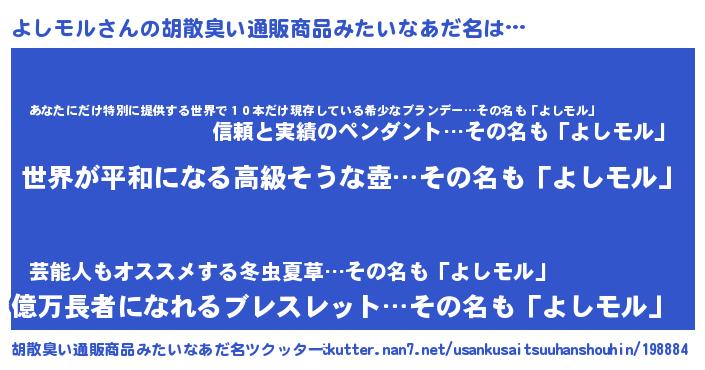 | 男性向けラノベタイトル風あだ名 | 『転生したらよしモルだった件』 |
