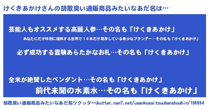 | ヘコむあだ名 | 『けくもー』『けくきあかけ(笑)』 |
