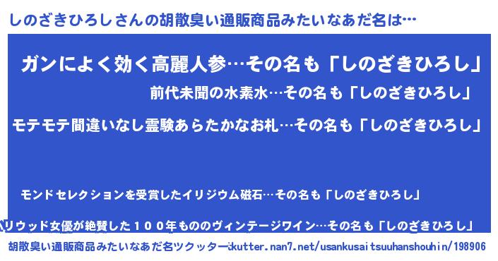 | ヘコむあだ名 | 『しのもー』『しのざきひろし(小並感)』 |