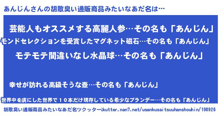 | 意味不明あだ名 | 『ペロリンあんじん』『自称あんじん』 |