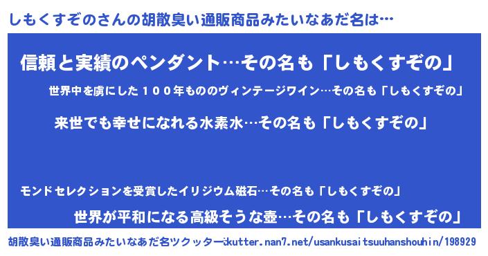 | 意味不明あだ名 | 『永久保存しもくすぞの』 |
