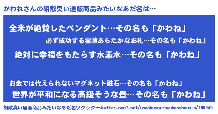 | ヘコむあだ名 | 『かわね(遠い目)』『かわっちょ』 |
