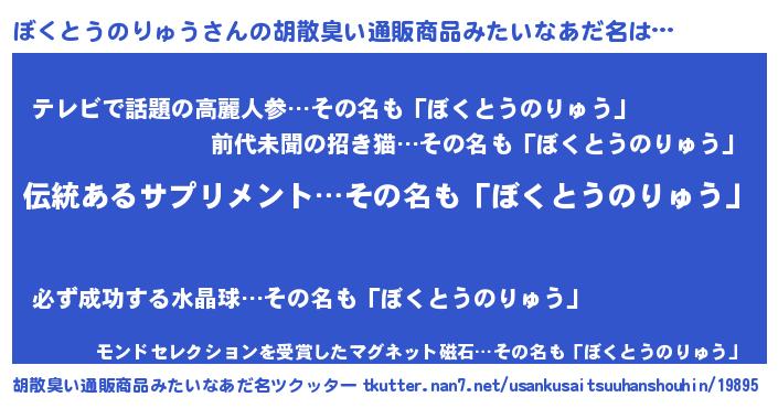 | 意味不明あだ名 | 『とにかく怪しいぼくとうのりゅう』 |