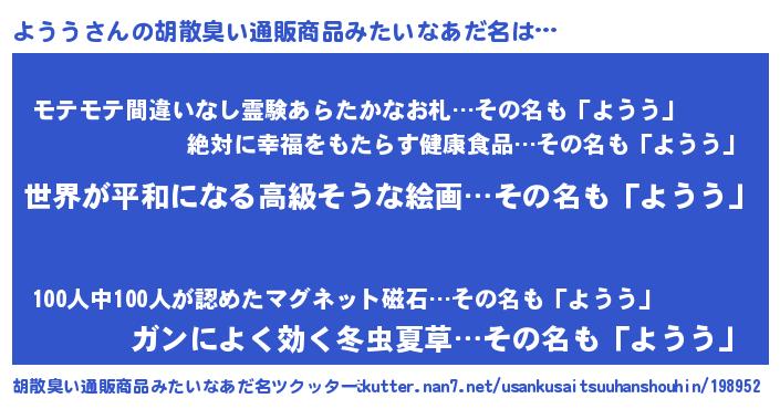 | 肩書あだ名 | 『ようう総理大臣』『ようう上級大将』 |
