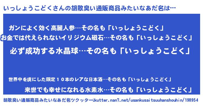 | ヒーロー風カッコイイあだ名 | 『スーパーイッショウコドク』 |