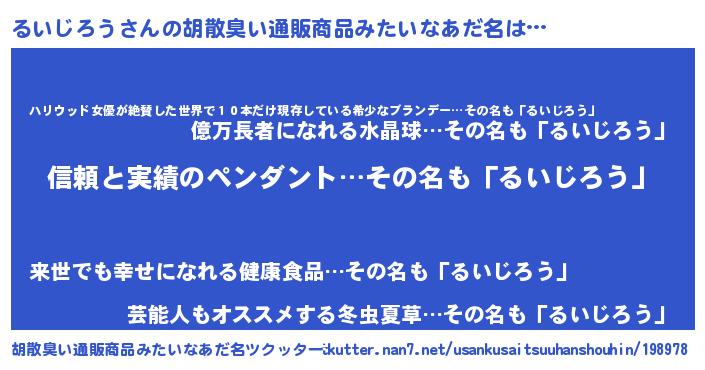 | 肩書あだ名 | 『るいじろう上級大将』『るいじろう塾長』 |