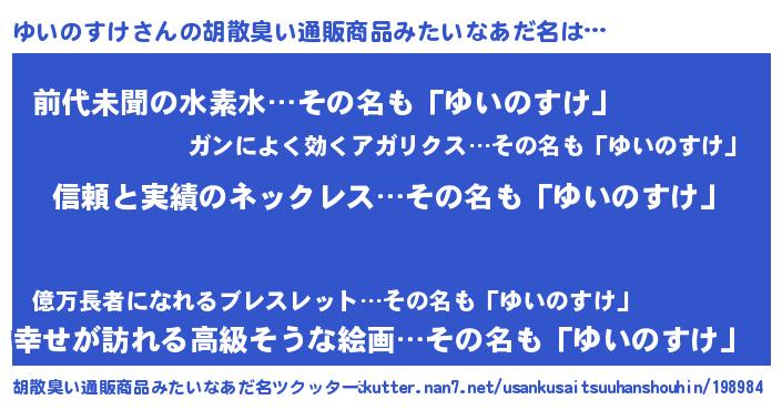 | 意味不明あだ名 | 『めかぶ科ゆいのすけ属』 |