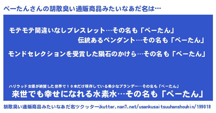 | 男性向けラノベタイトル風あだ名 | 『ノーゲーム・ノーペータン』 |