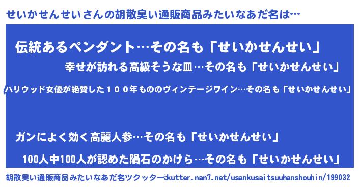 | 意味不明あだ名 | 『住所不定無職せいかせんせい(11歳)』 |