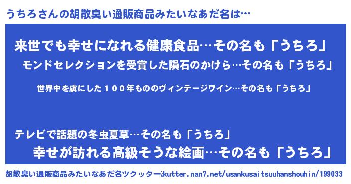 | 意味不明あだ名 | 『住所不定無職うちろ(7歳)』『自称うちろ』 |