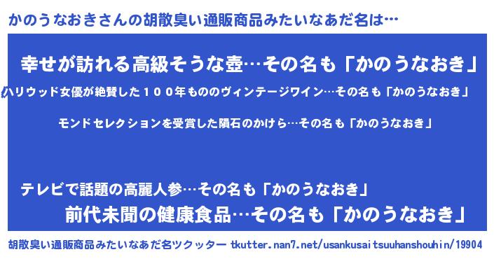 | ヒーロー風カッコイイあだ名 | 『慈愛の使者かのうなおき』 |