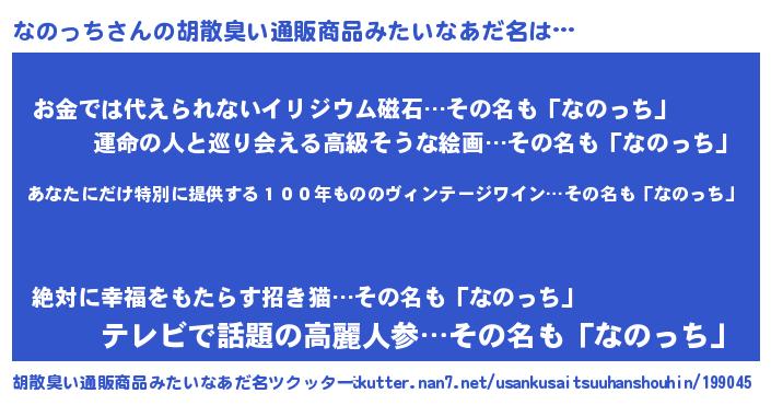 | 意味不明あだ名 | 『住所不定無職なのっち(6歳)』 |