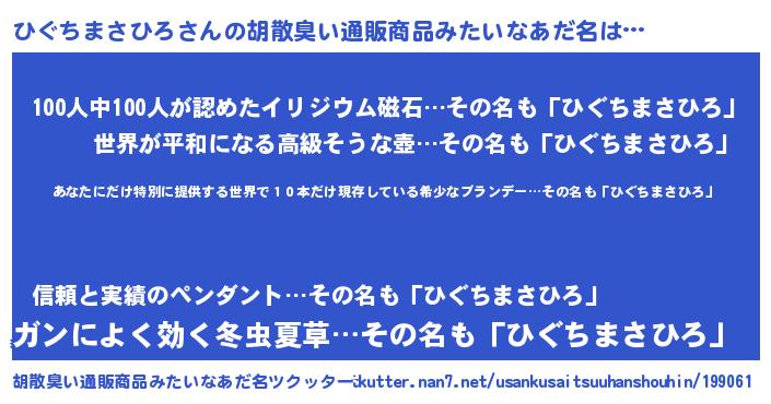 | 欧米人風あだ名 | 『ひぐちまさひろ・ステッグマイヤー』 |