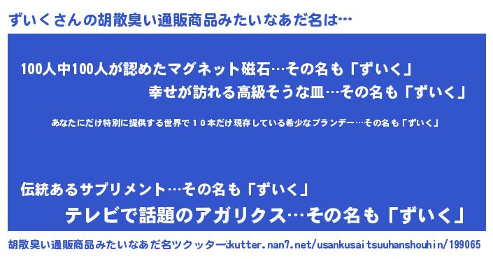 | 欧米人風あだ名 | 『アンジェラ・ずいく』『ダニエルずいく』 |