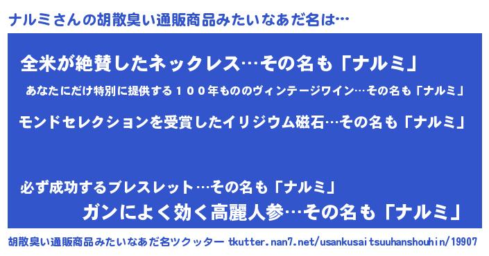 | 意味不明あだ名 | 『眠気覚ましガムナルミ味』『自称ナルミ』 |