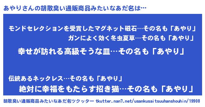 | 意味不明あだ名 | 『あやりフォーエバー』『永久保存あやり』 |